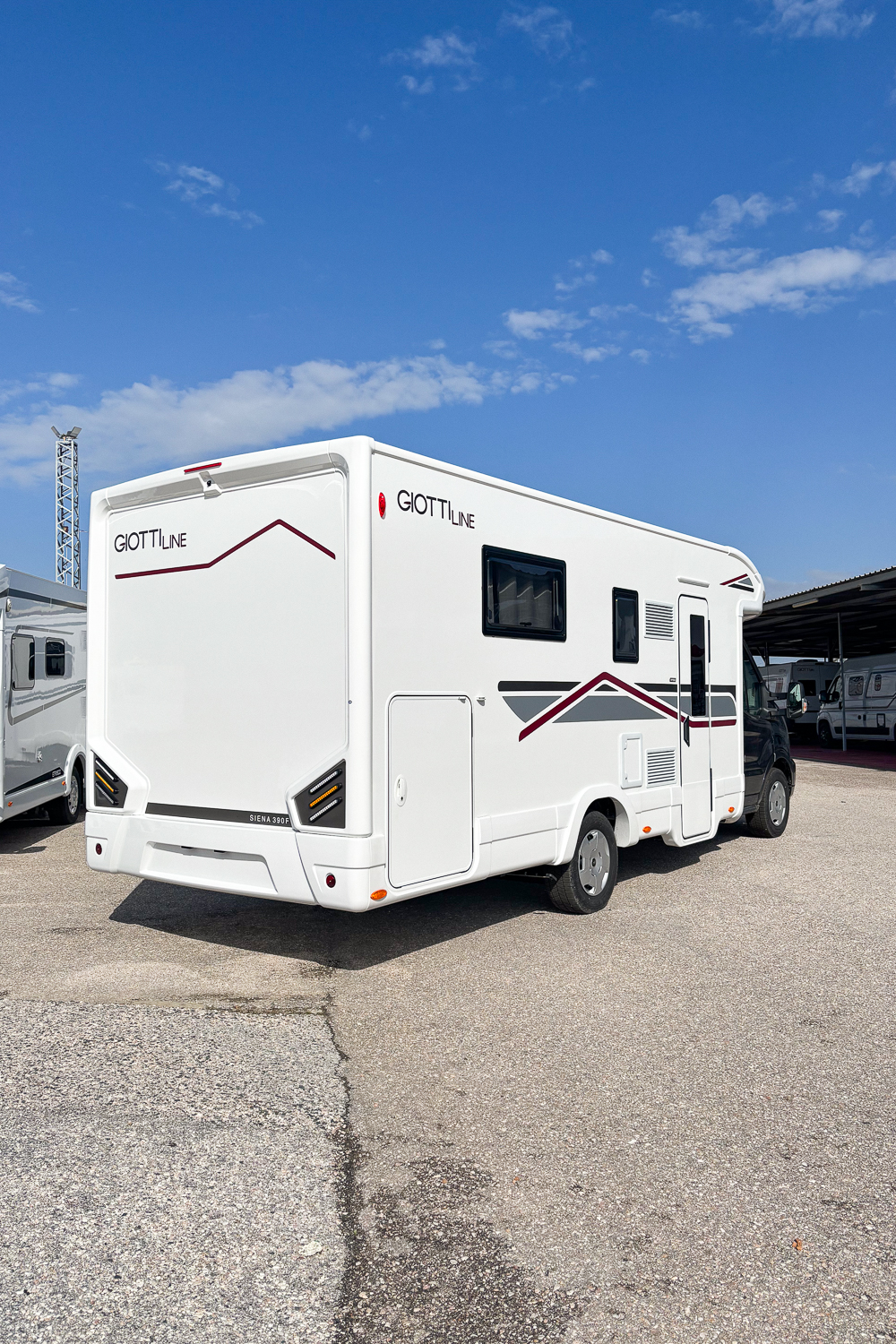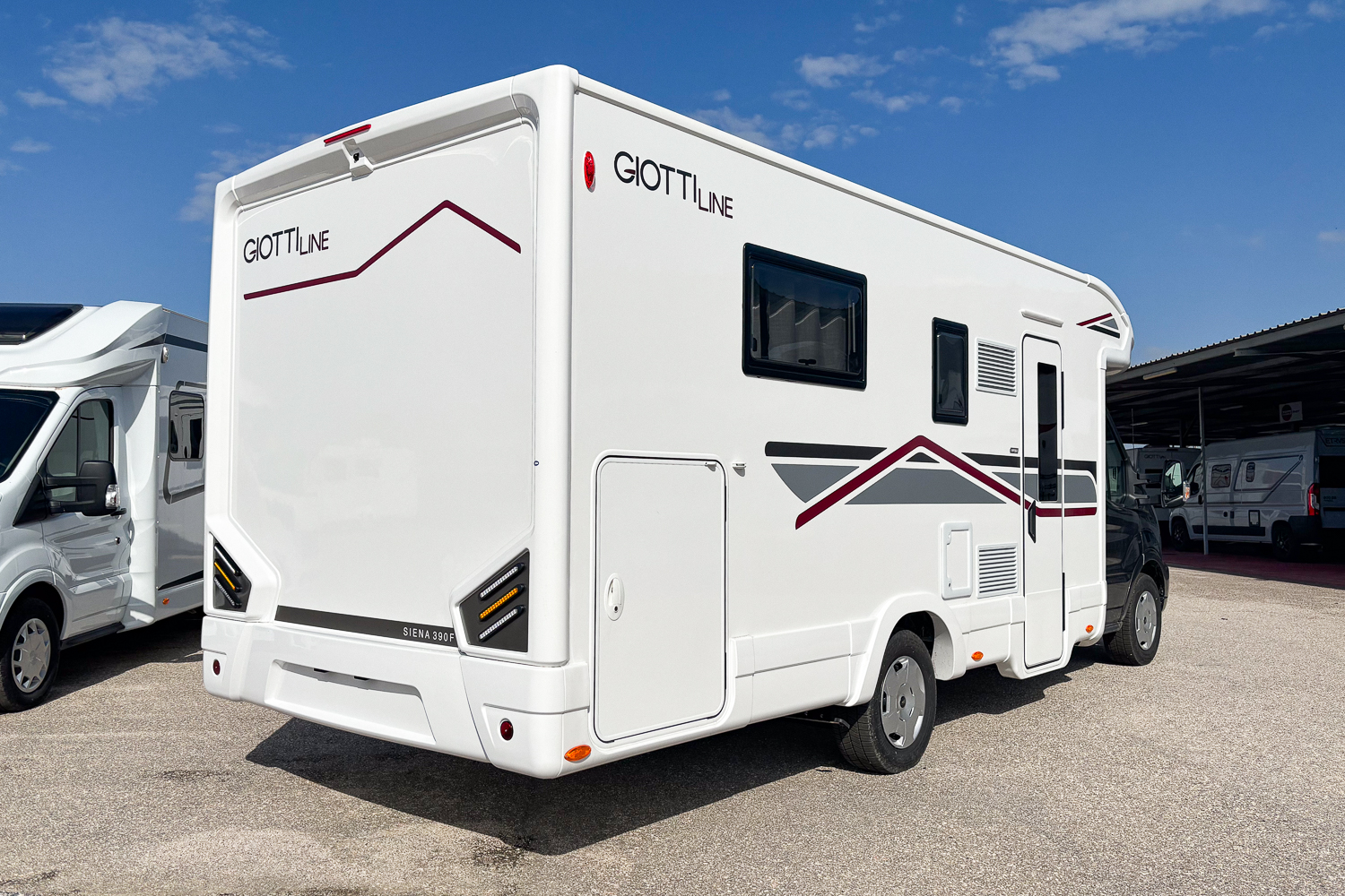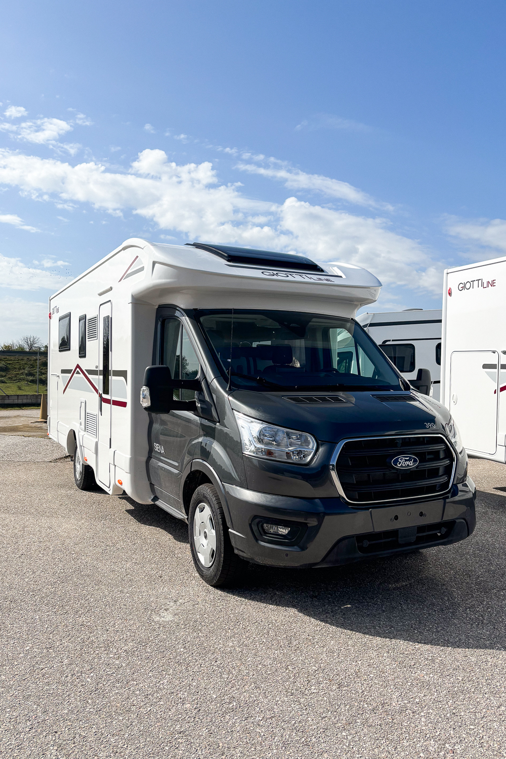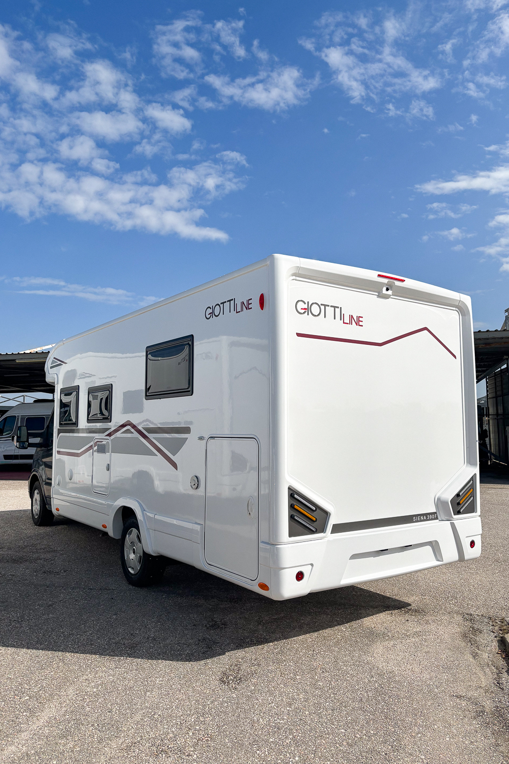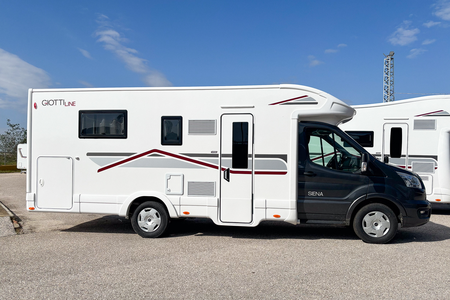 La Giottiline Siena 390 F es una autocaravana perfilada con capacidad para cinco personas. Un vehículo perfecto para parejas y familias que quieran disfrutar de sus viajes con una distribución cómoda y confortable.