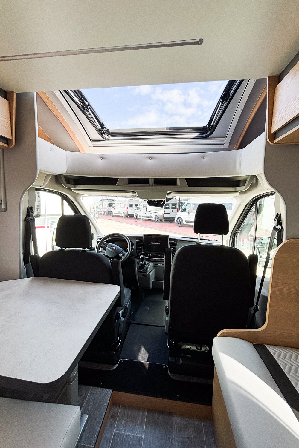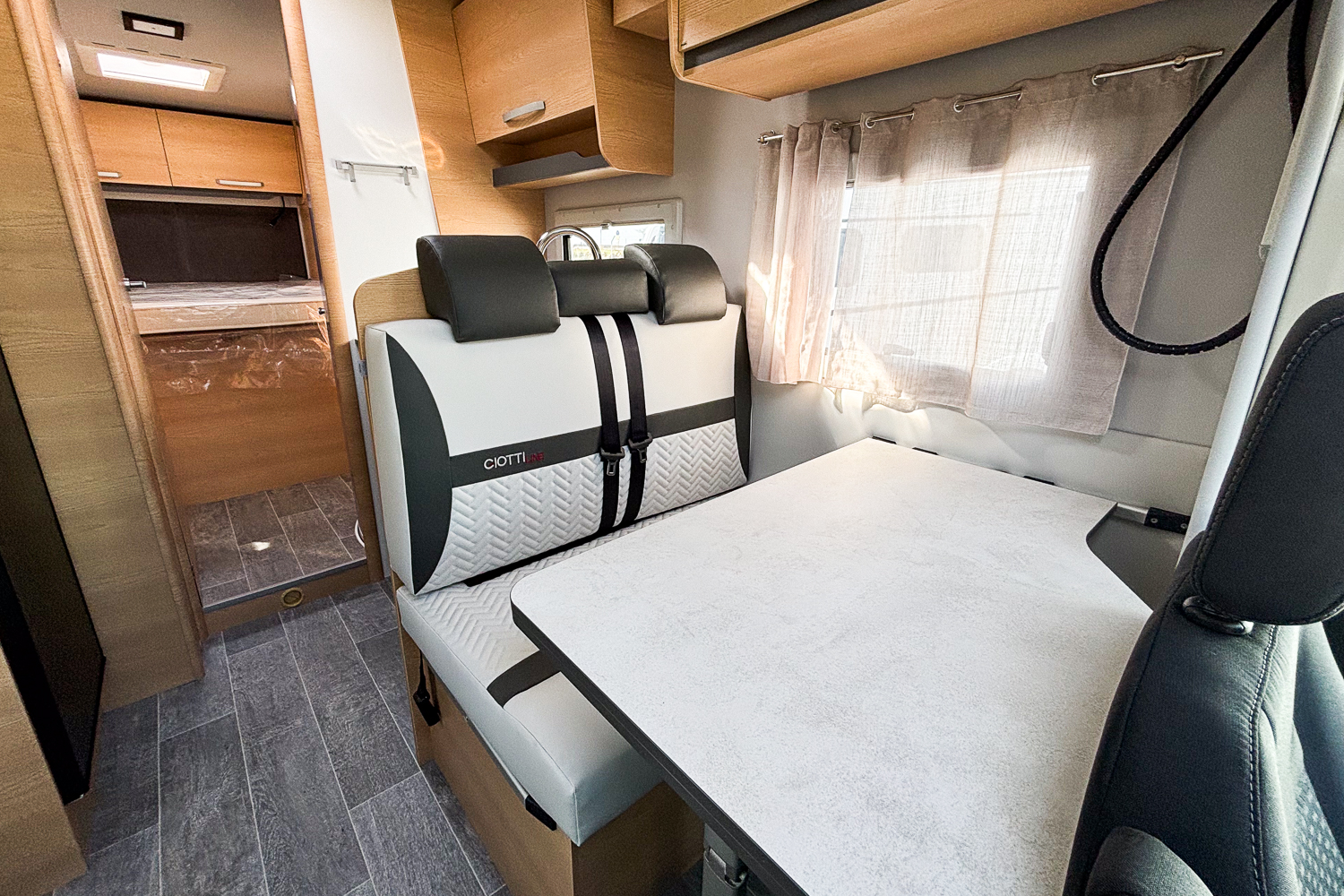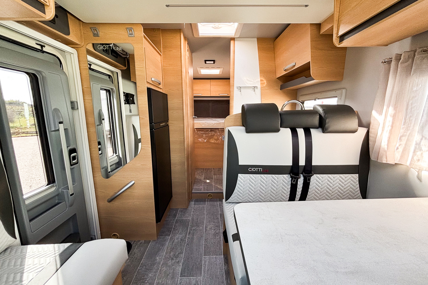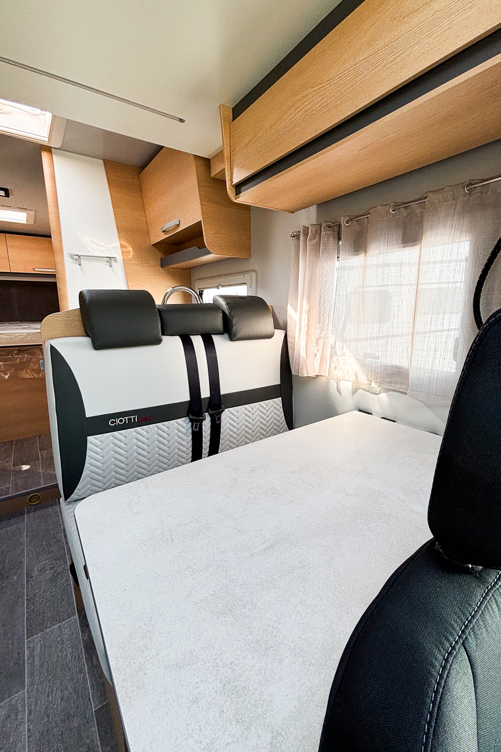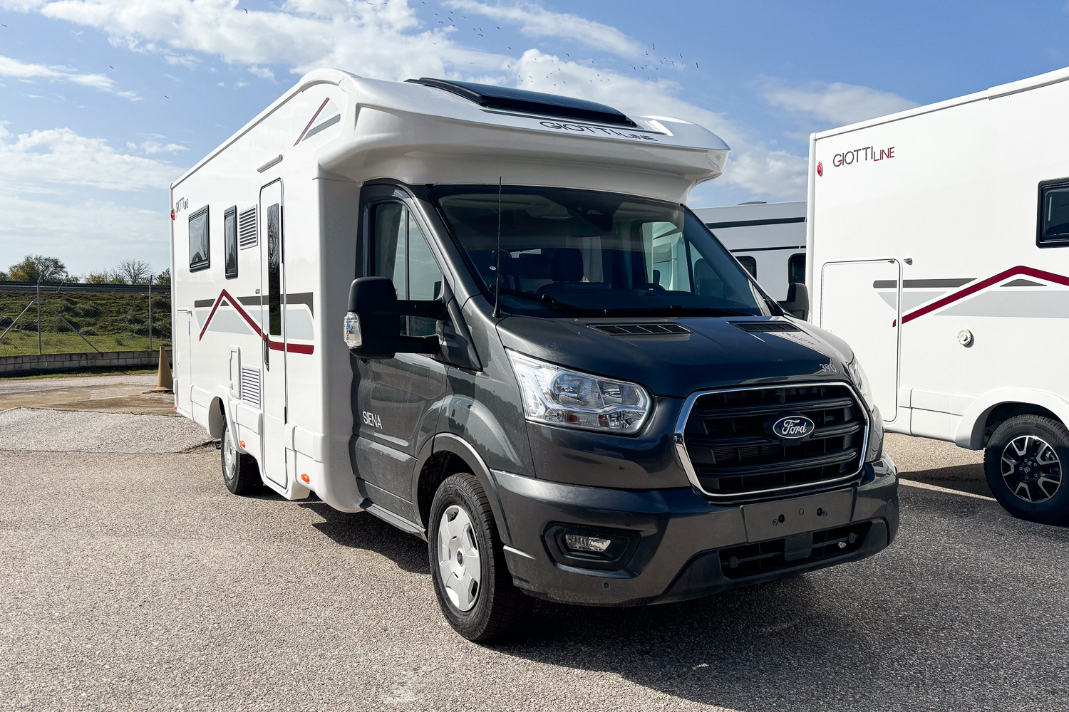 La Giottiline Siena 390 F es una autocaravana perfilada con capacidad para cinco personas. Un vehículo perfecto para parejas y familias que quieran disfrutar de sus viajes con una distribución cómoda y confortable.
