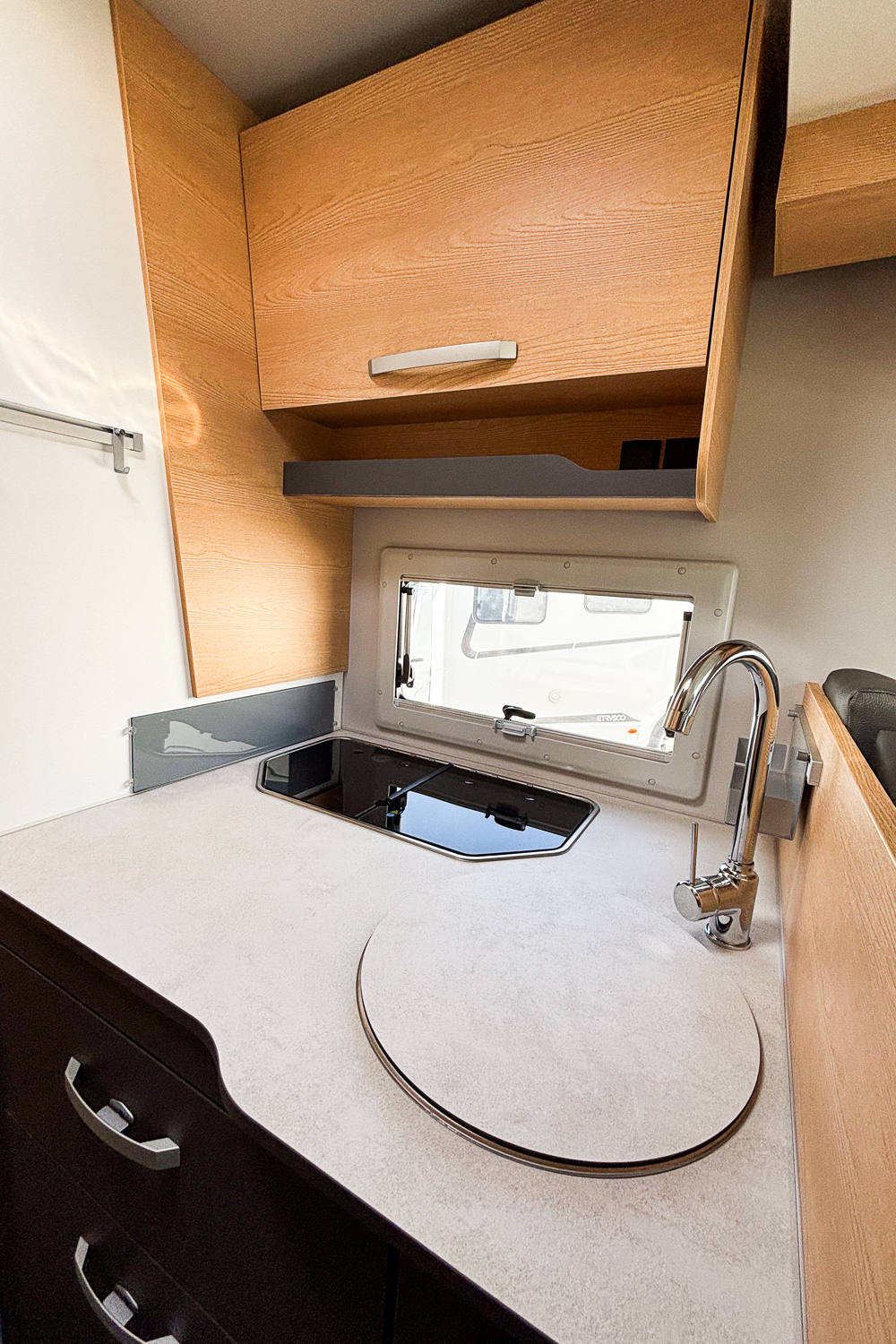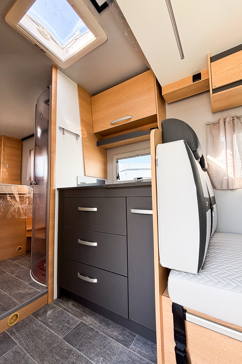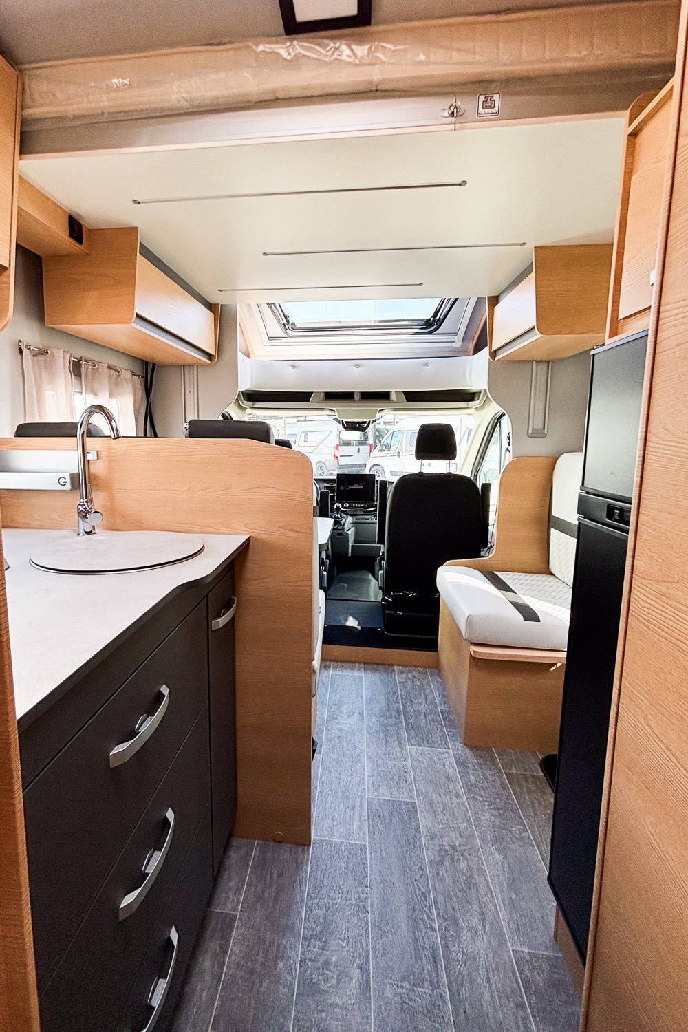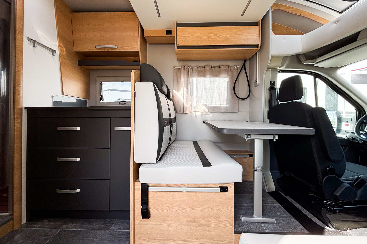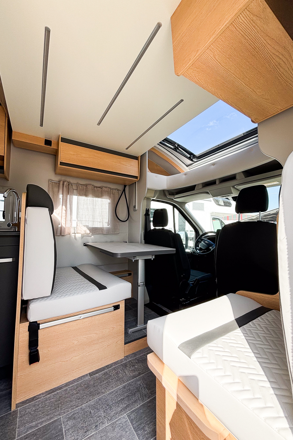 La Giottiline Siena 390 F es una autocaravana perfilada con capacidad para cinco personas. Un vehículo perfecto para parejas y familias que quieran disfrutar de sus viajes con una distribución cómoda y confortable.