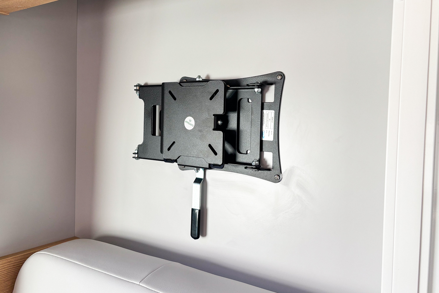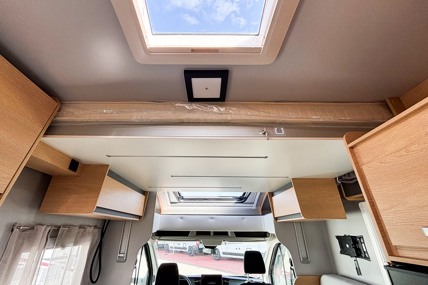 Sobre el salón se dispone otra cama doble fácilmente abatible y perfectamente integrada en el techo, ofreciendo así hasta cinco plazas para dormir.