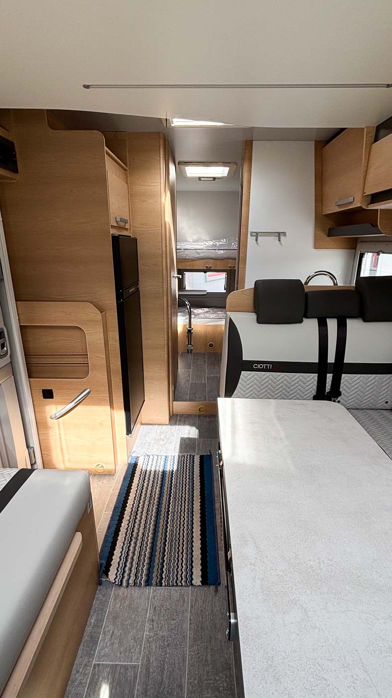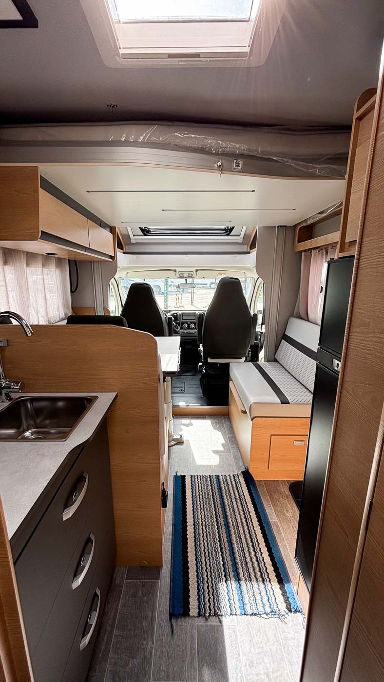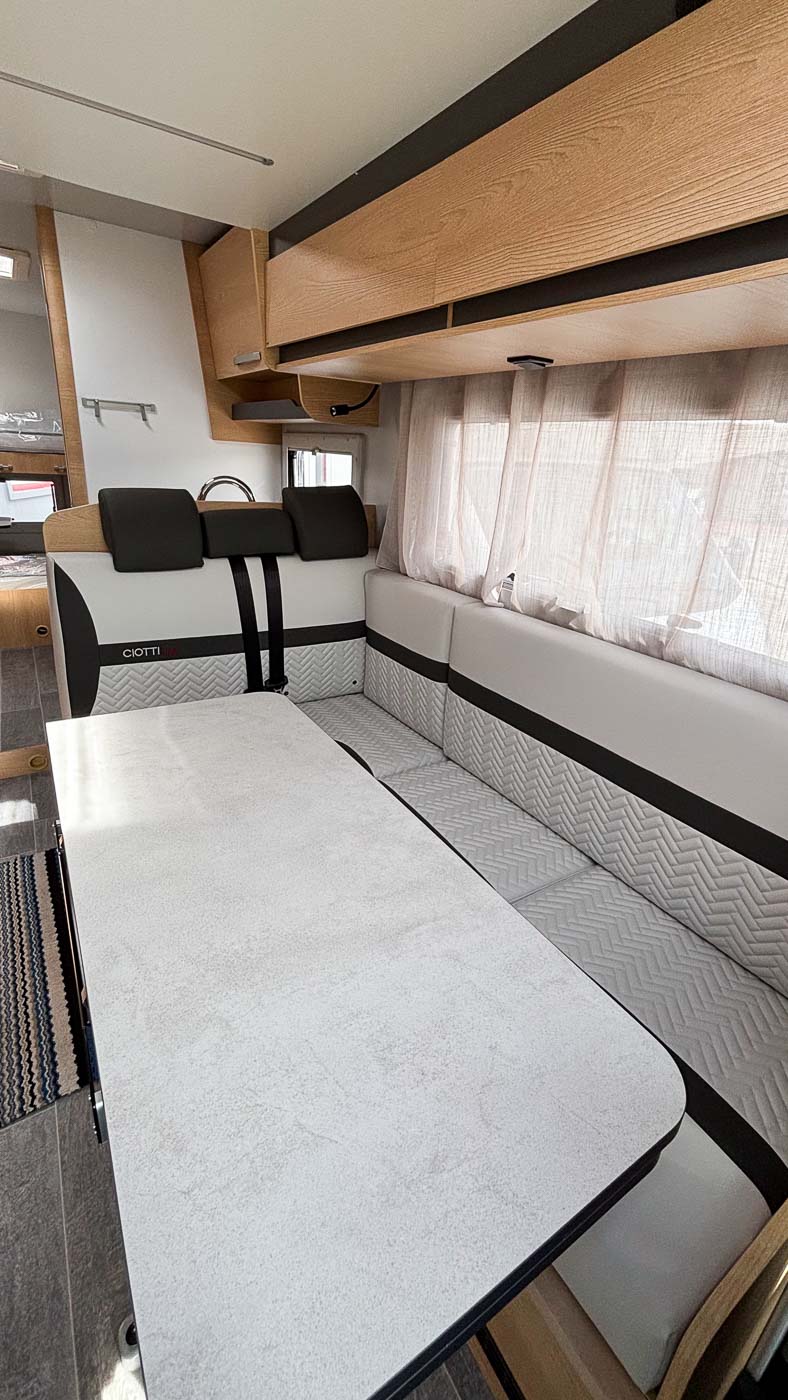 La Giottiline Siena 396 es una autocaravana perfilada con capacidad para cinco personas. Un vehículo perfecto para parejas y familias que quieran disfrutar de sus viajes con una distribución original y confortable.