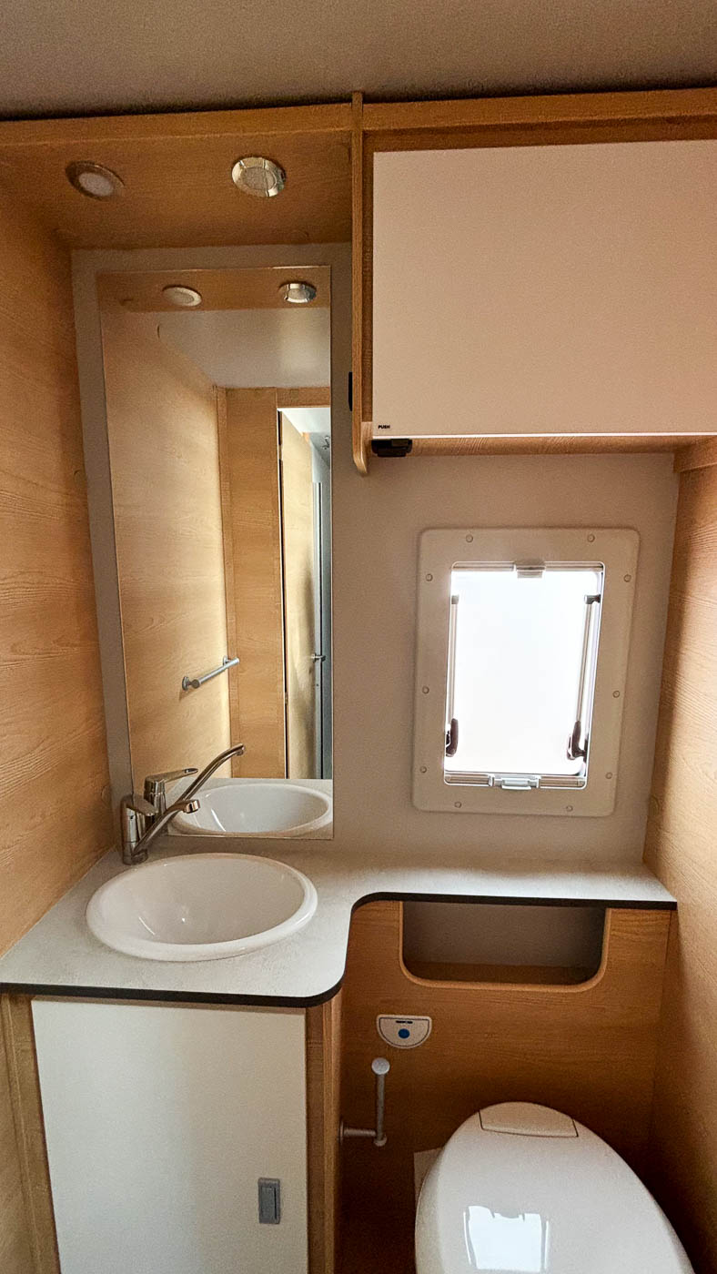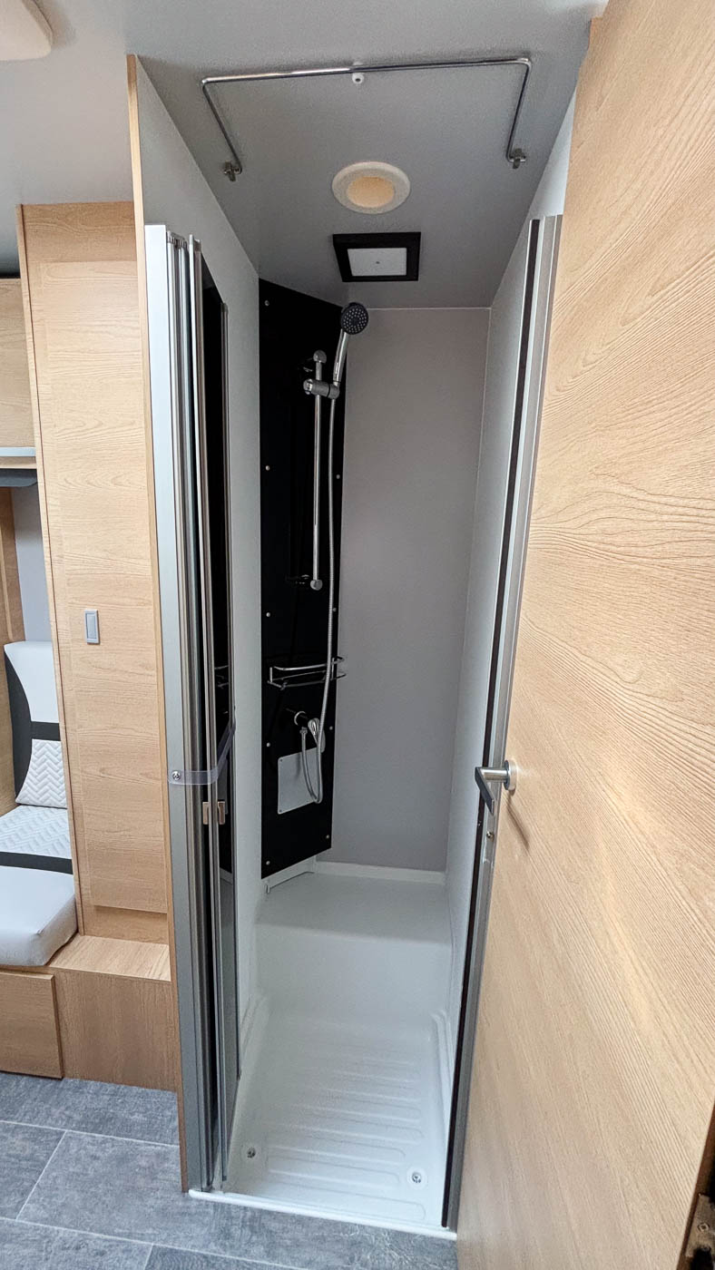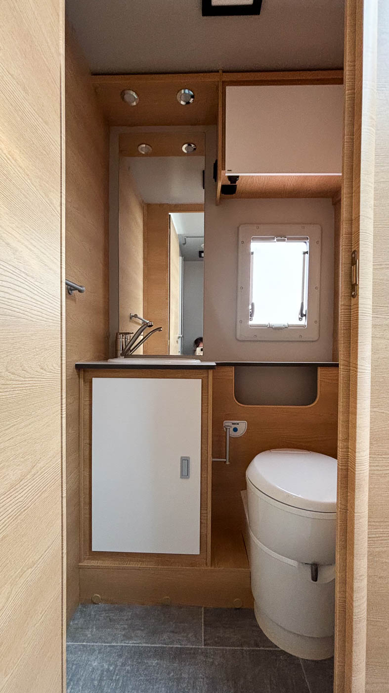 El baño está equipado con W.C, lavamanos y varios espacios de almacenamiento para nuestro equipaje. Frente al baño se dispone la cabina de ducha, completamente independiente, amplia y cómoda.