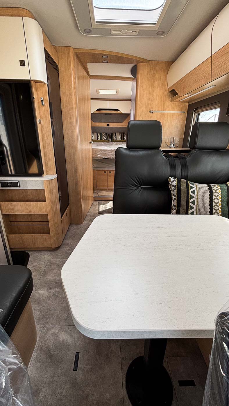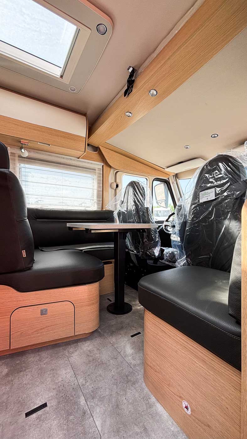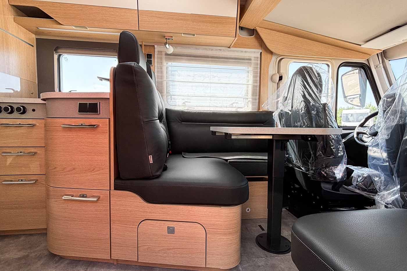 Cuenta con amplio salón en forma de «L», espacioso y cómodo en el que compartir los mejores momentos durante nuestras estancias, gracias a los asientos giratorios de la cabina, la mesa regulable y al sofá auxiliar del que dispone.