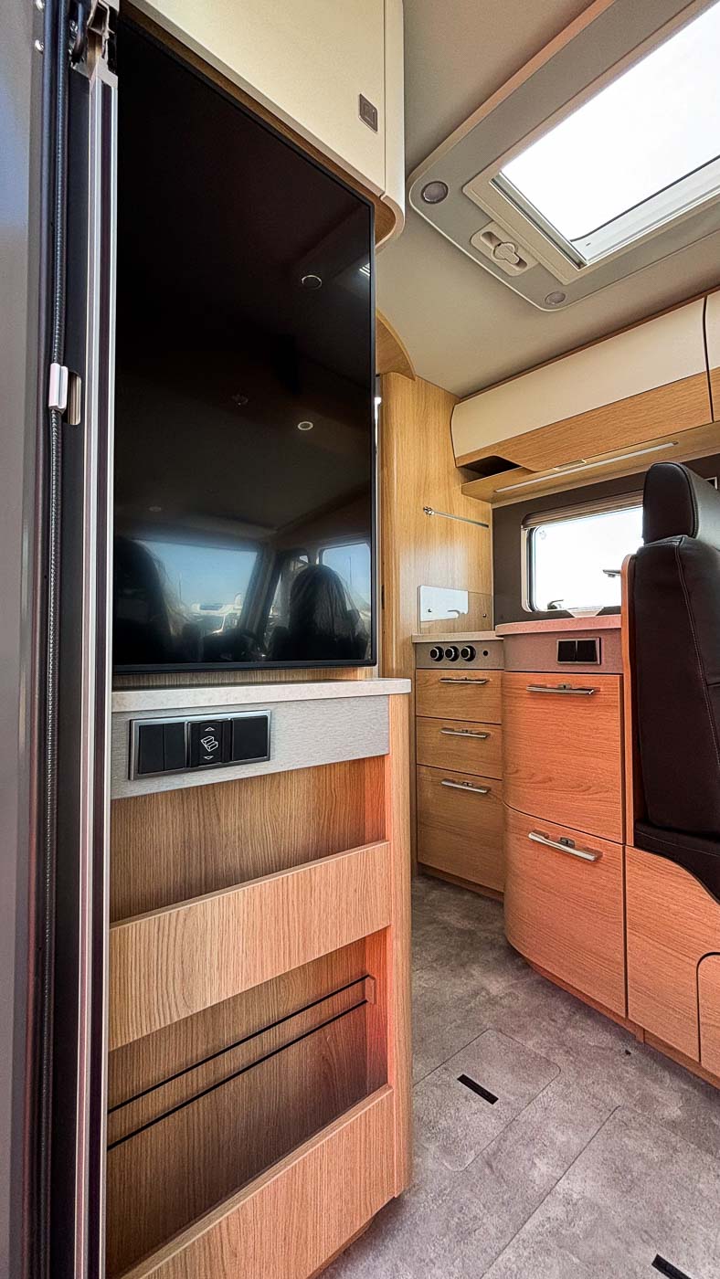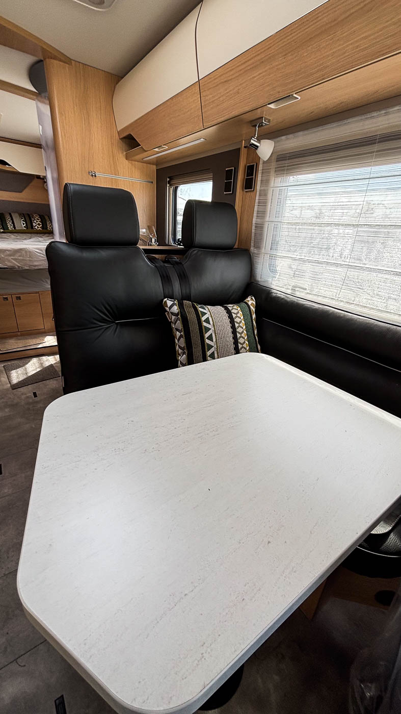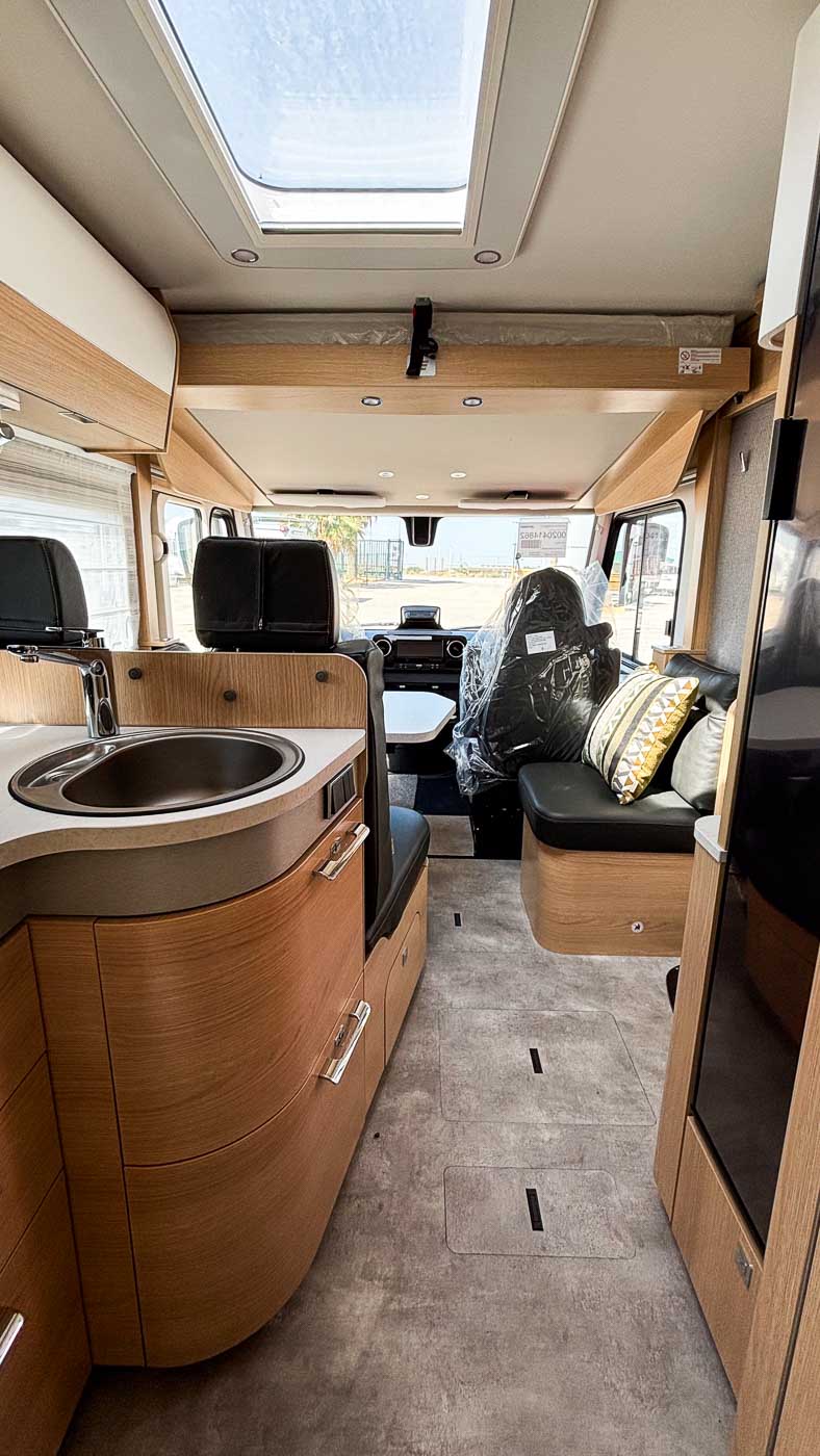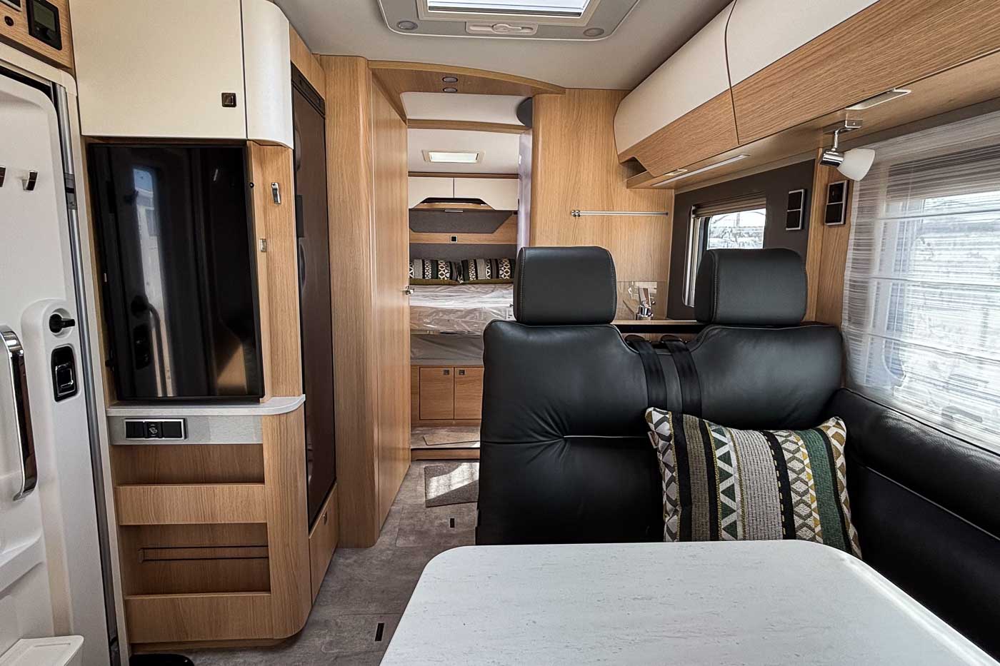 Cuenta con amplio salón en forma de «L», espacioso y cómodo en el que compartir los mejores momentos durante nuestras estancias, gracias a los asientos giratorios de la cabina, la mesa regulable y al sofá auxiliar del que dispone.
