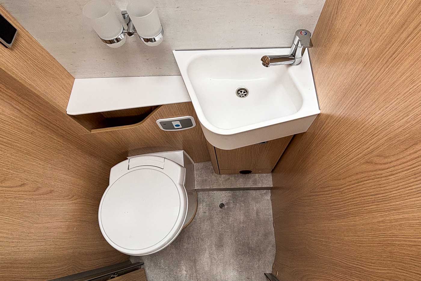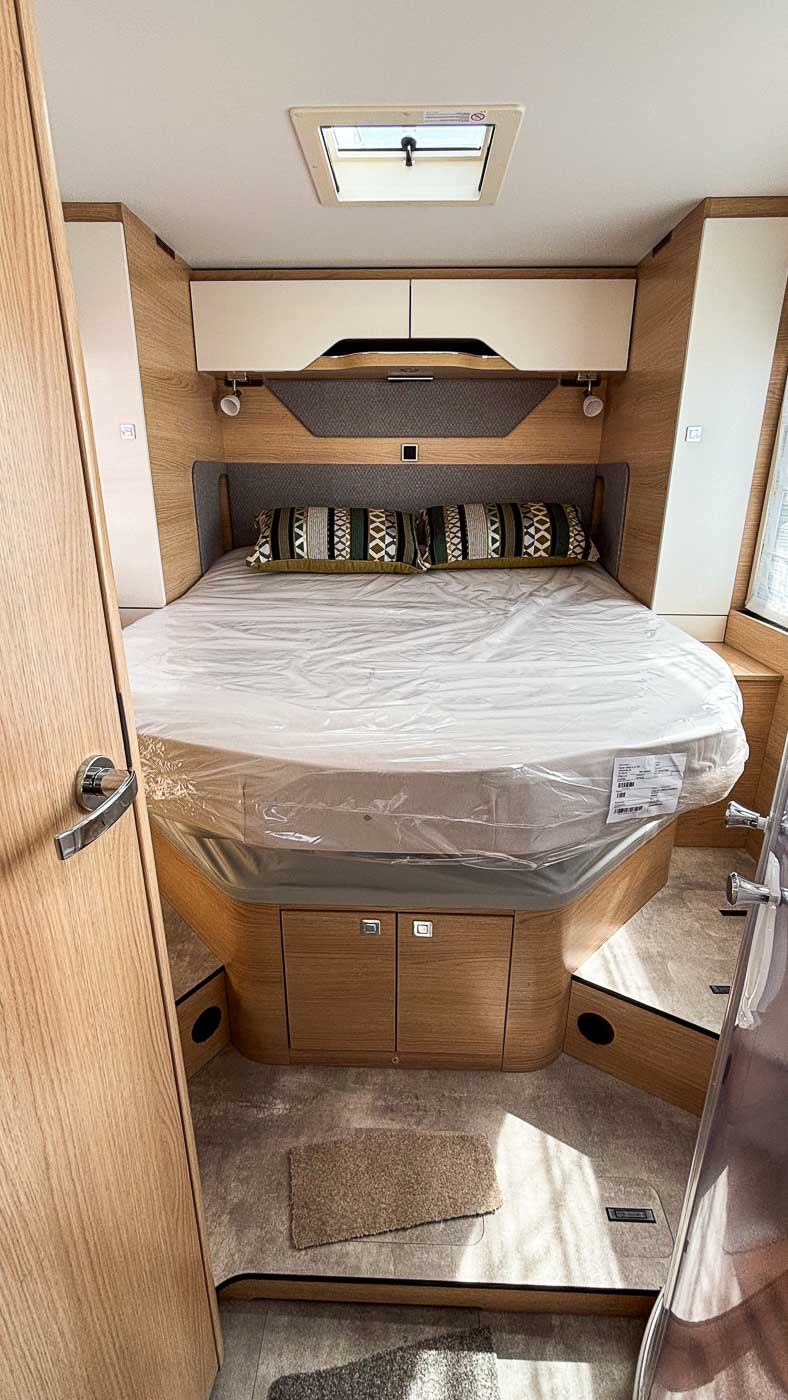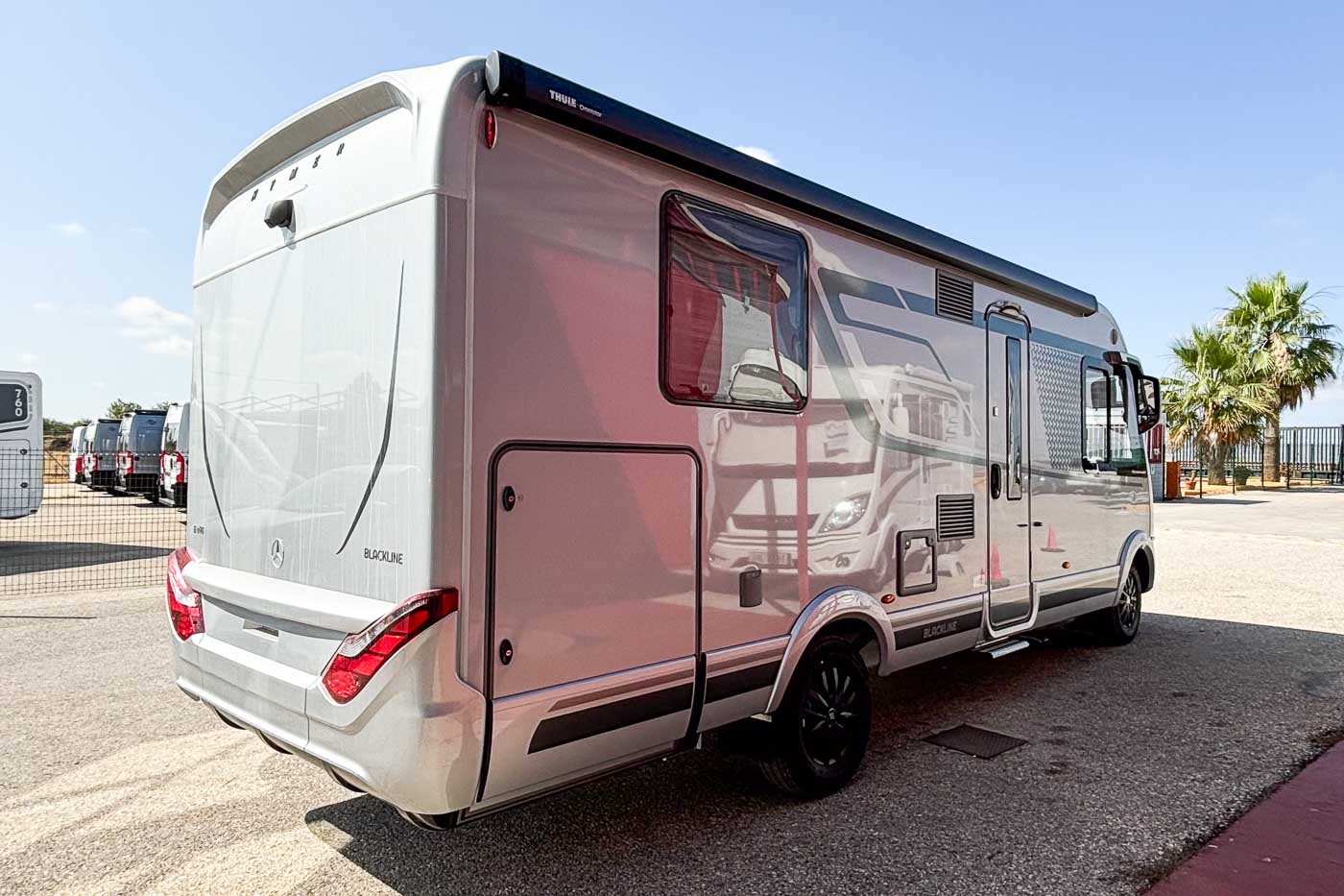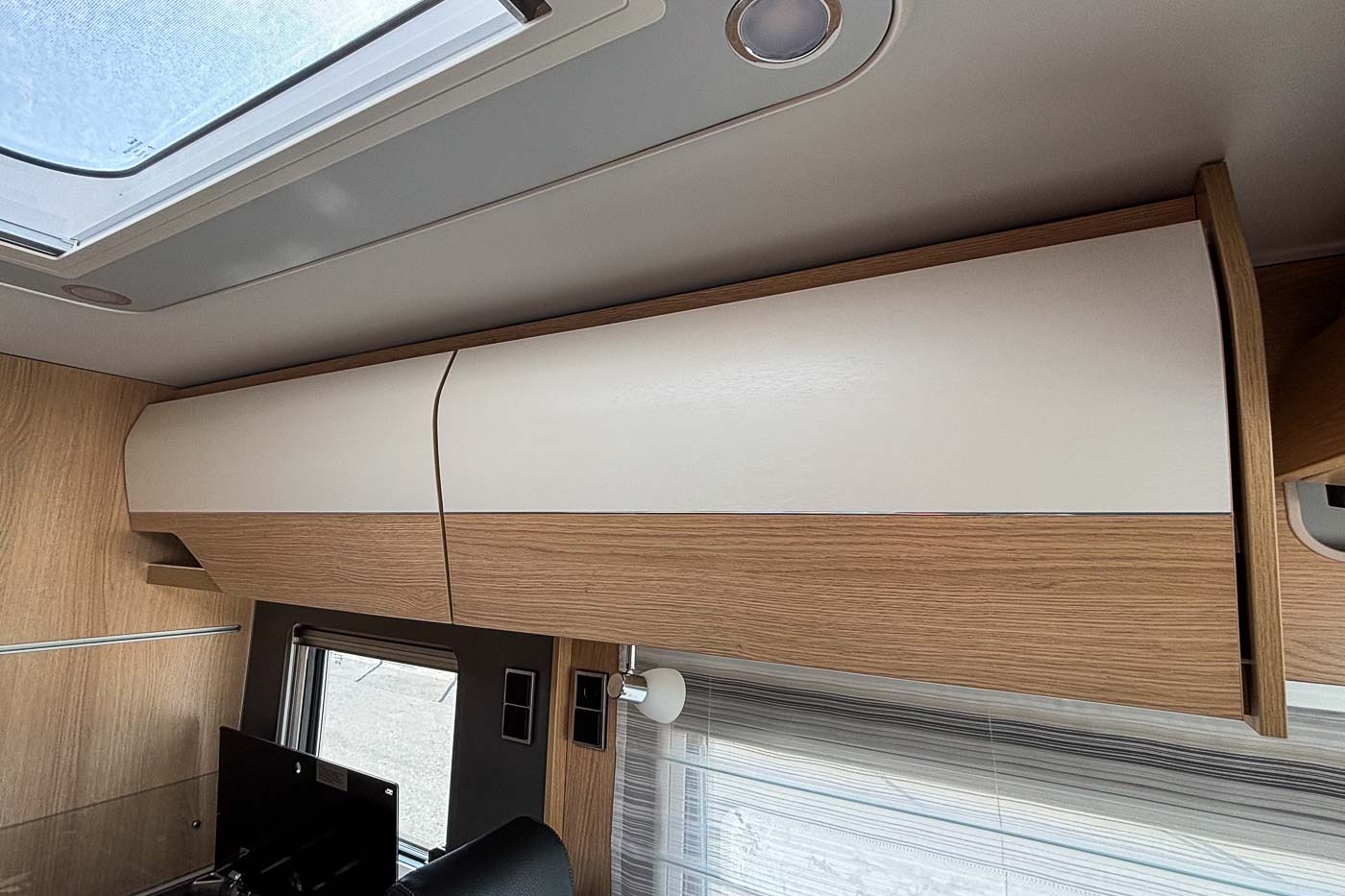 Esta Hymer B MC I 690 es una autocaravana integral para cuatro personas. Dispone de amplia cama isla en la parte trasera, fácilmente accesible desde ambos laterales, con numerosos espacios de almacenamiento para organizar nuestro equipaje, tanto en la parte superior como en la parte inferior de la cama. Esta cama es regulable en altura.