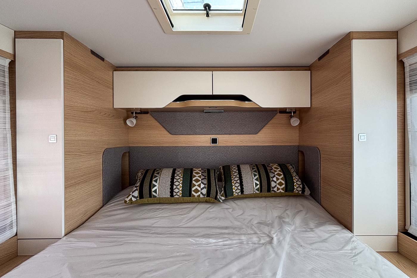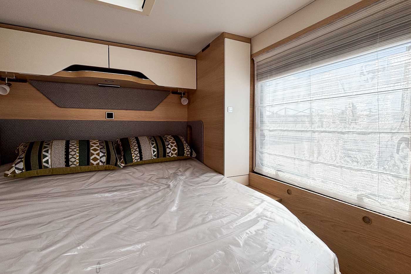 Sobre la cabina dispone de otra cama doble integrada en techo, fácilmente abatible y de grandes dimensiones, ofreciendo así hasta cuatro plazas para dormir.