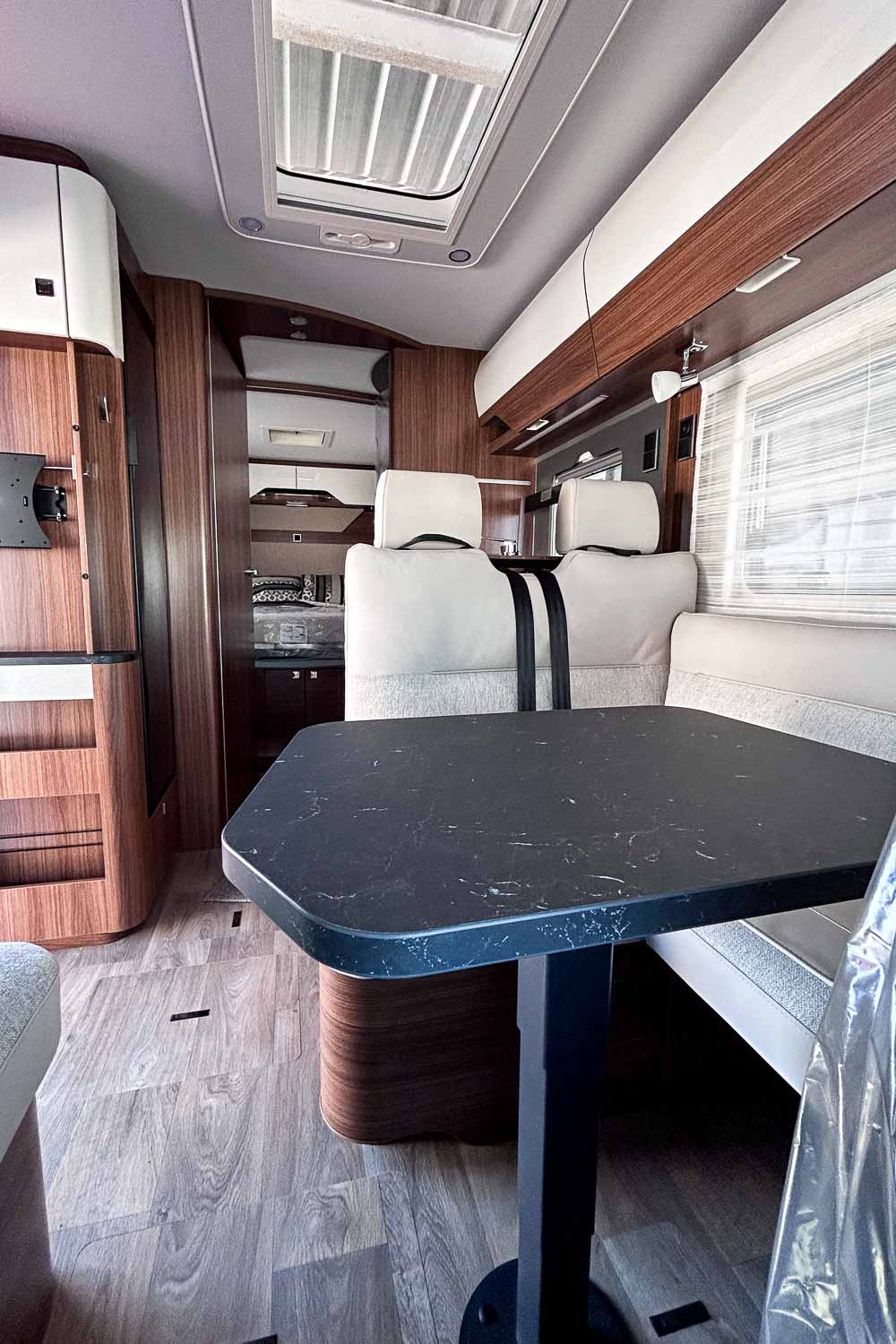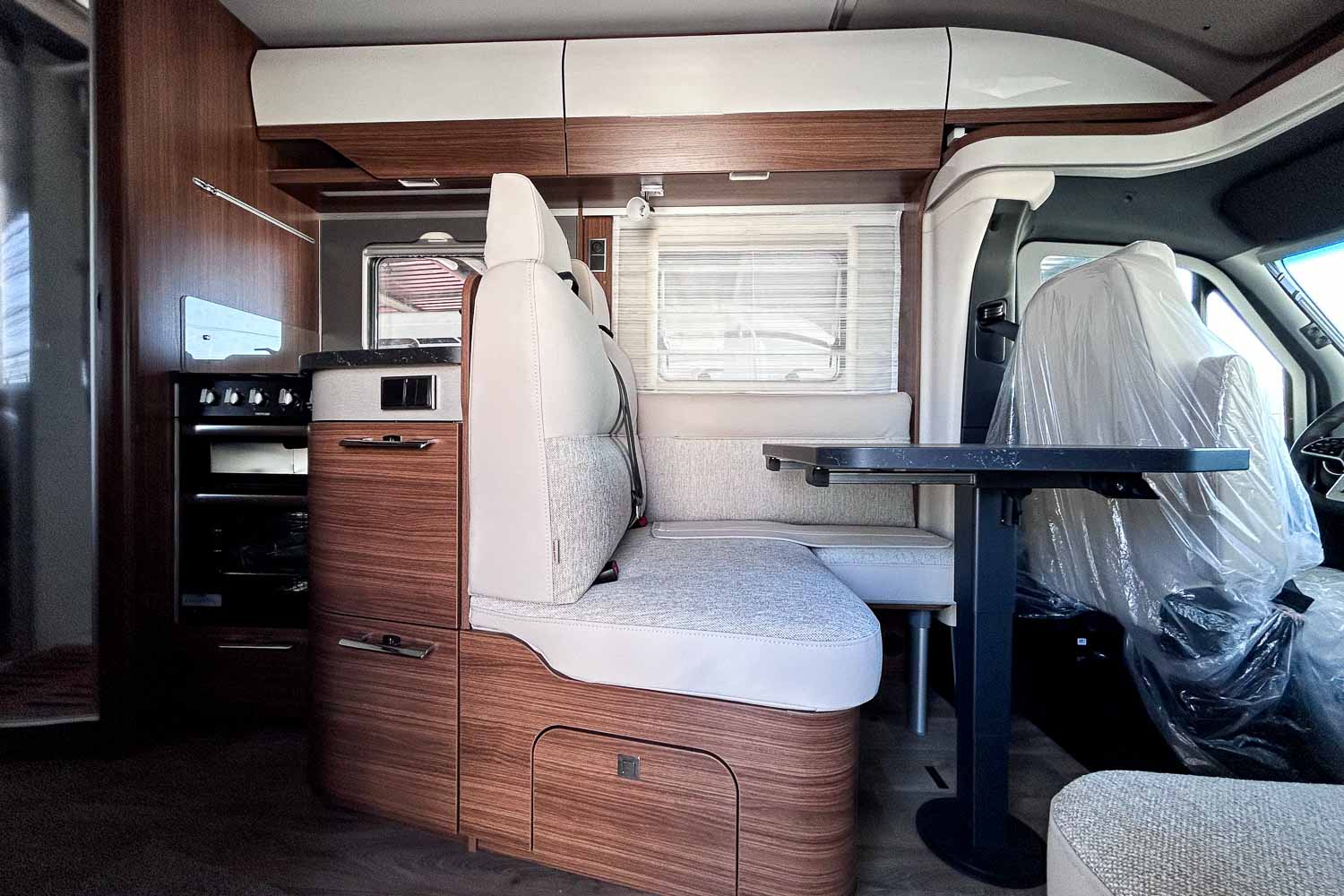 Cuenta con amplio salón en «L» en el que compartir los mejores momentos durante la estancia. Dispone de gran mesa ajustable, para aprovechar al máximo el espacio, así como asientos giratorios de la cabina y sofá auxiliar. Esta zona puede transformarse en cama individual, ofreciendo así hasta tres plazas para dormir.