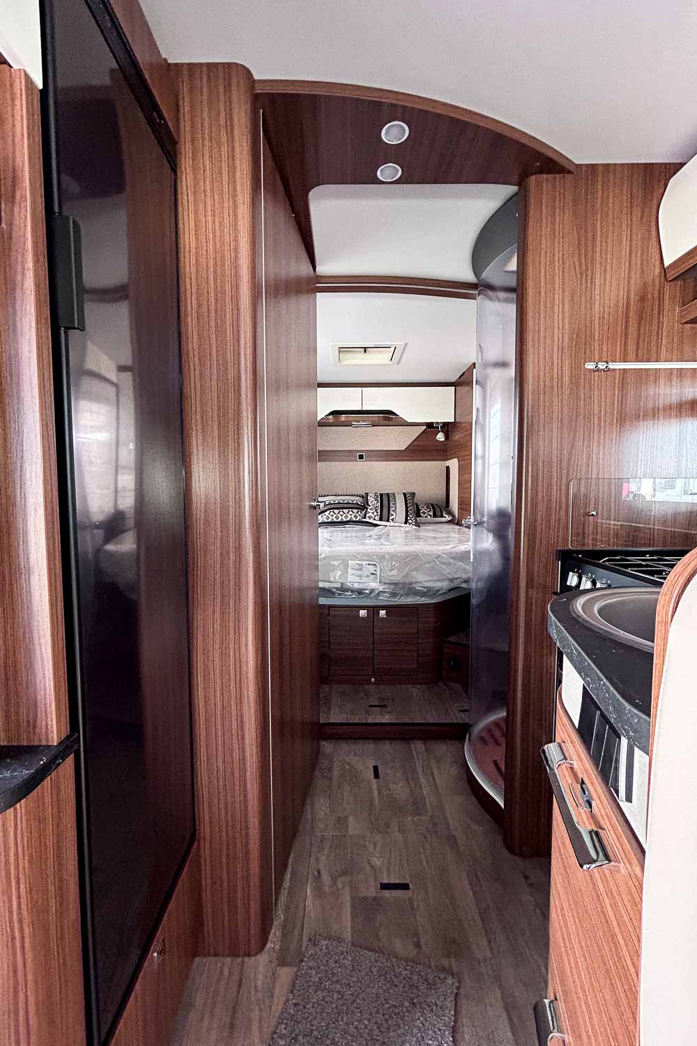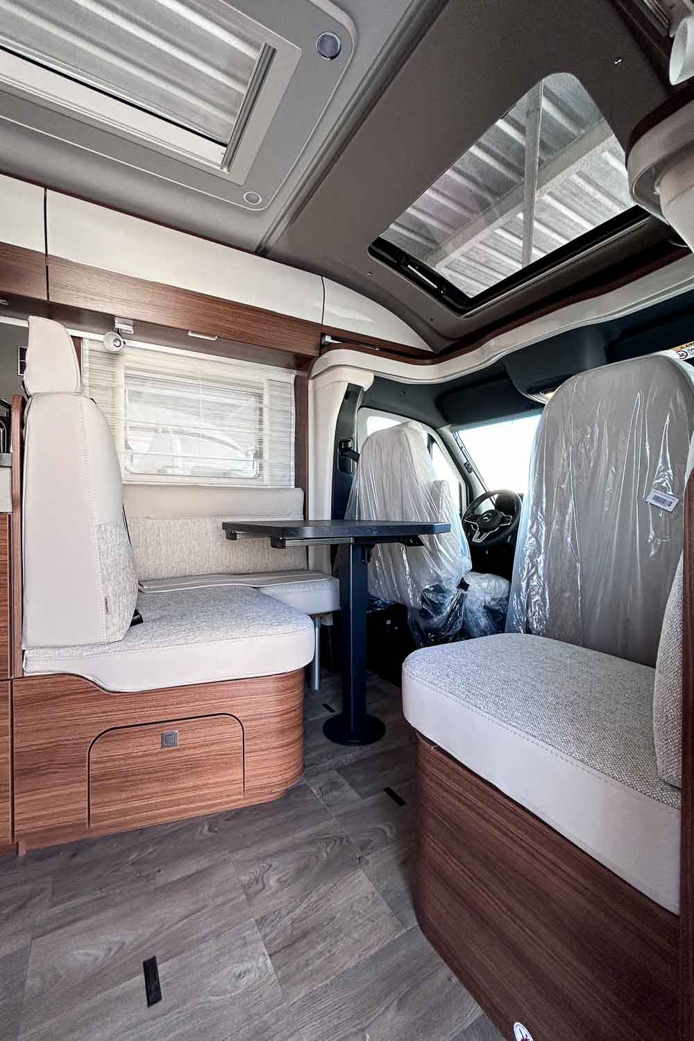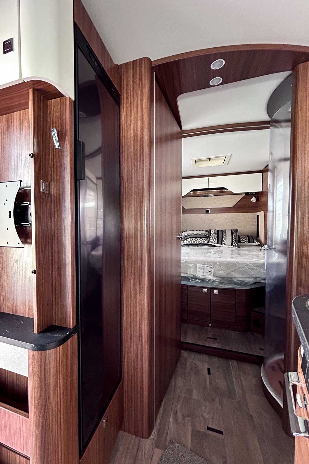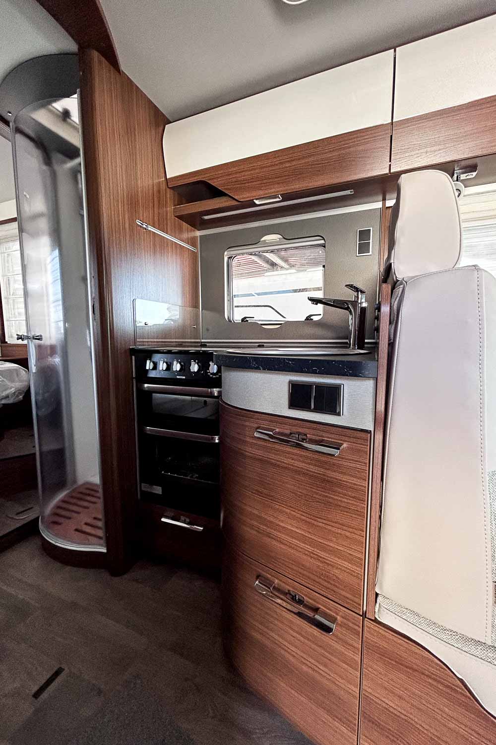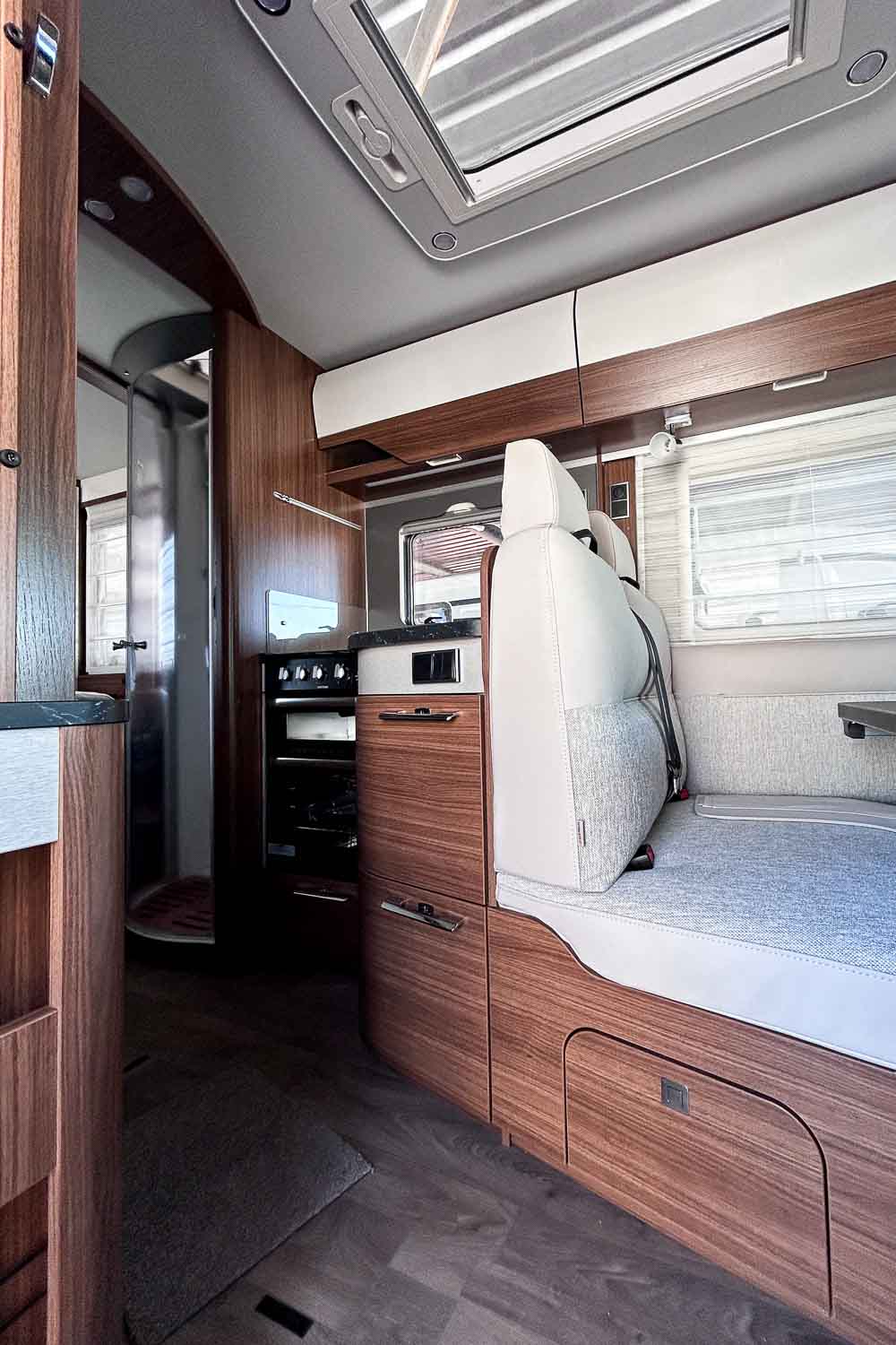 Living Confort Pack: Rejilla de madera en la ducha · 4 cojines con funda · Ambient Light System: sistema de iluminación 4 niveles con control dinámico e individual de la iluminación (incluida la temperatura de la luz) y la iluminación ambiente zócalo · Enchufes adicionales (incl. panelado pared cocina)