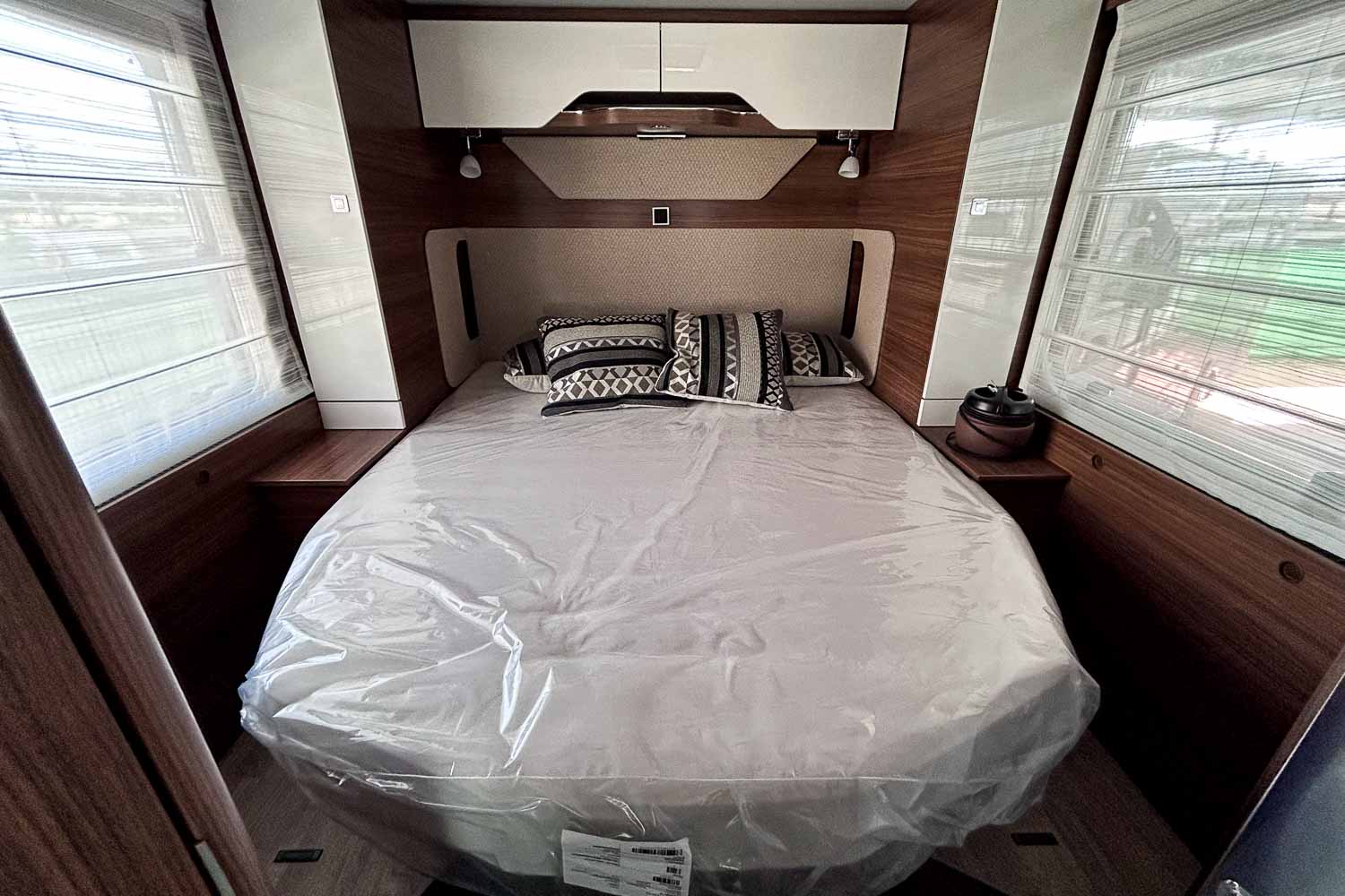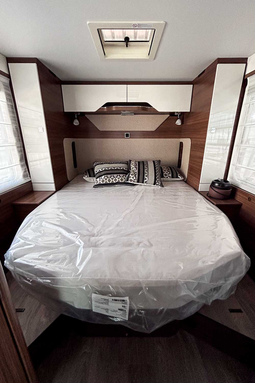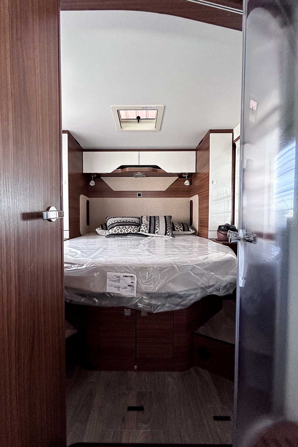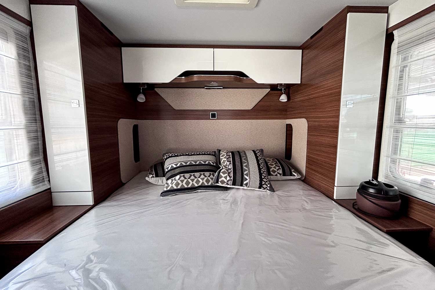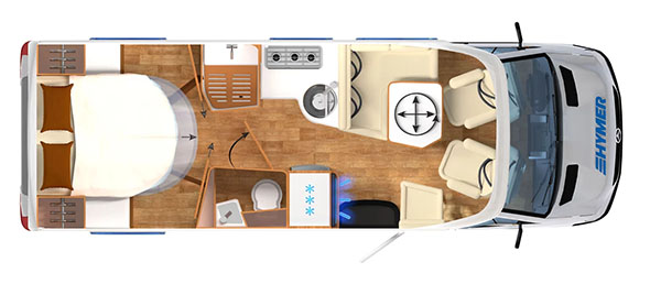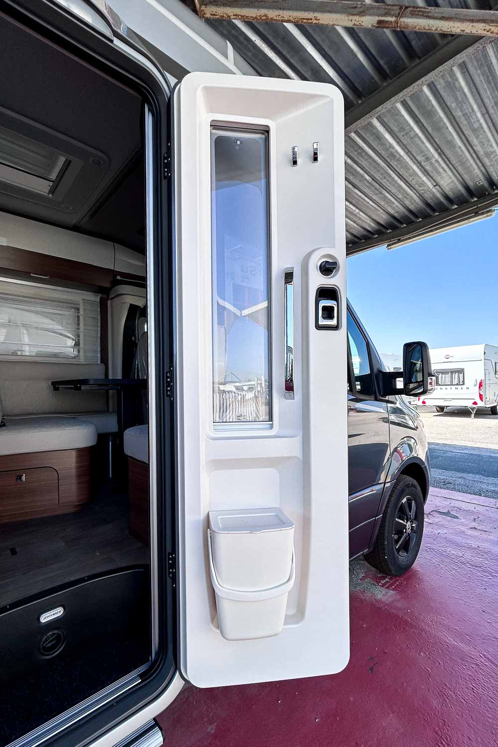 La Hymer B MC T 690 es una autocaravana perfilada para tres personas. Dispone de cama isla en la parte trasera, fácilmente accesible desde ambos laterales. Dispone de numerosos espacios de almacenamiento para organizar nuestro equipaje, tanto en la parte superior como en la parte inferior de la cama.