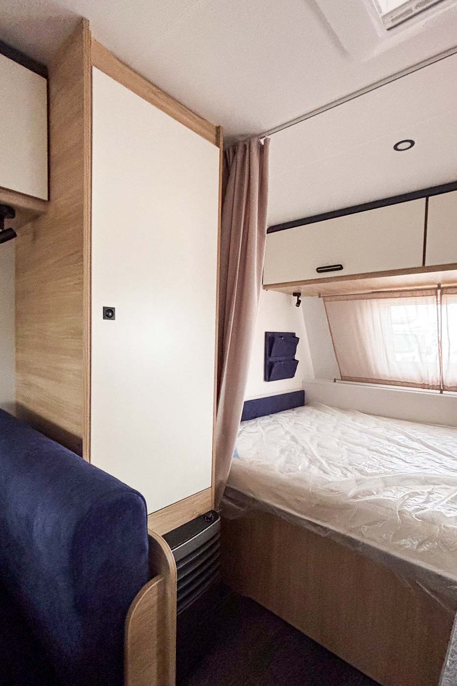 La Sterckeman Easy 390 CP es una caravana compacta de dos ambientes con capacidad para tres personas. Una caravana ideal para parejas y familias que quieran disfrutar de sus viajes en una caravana pequeñita pero que cuenta con todo lo necesario para estancias confortables.